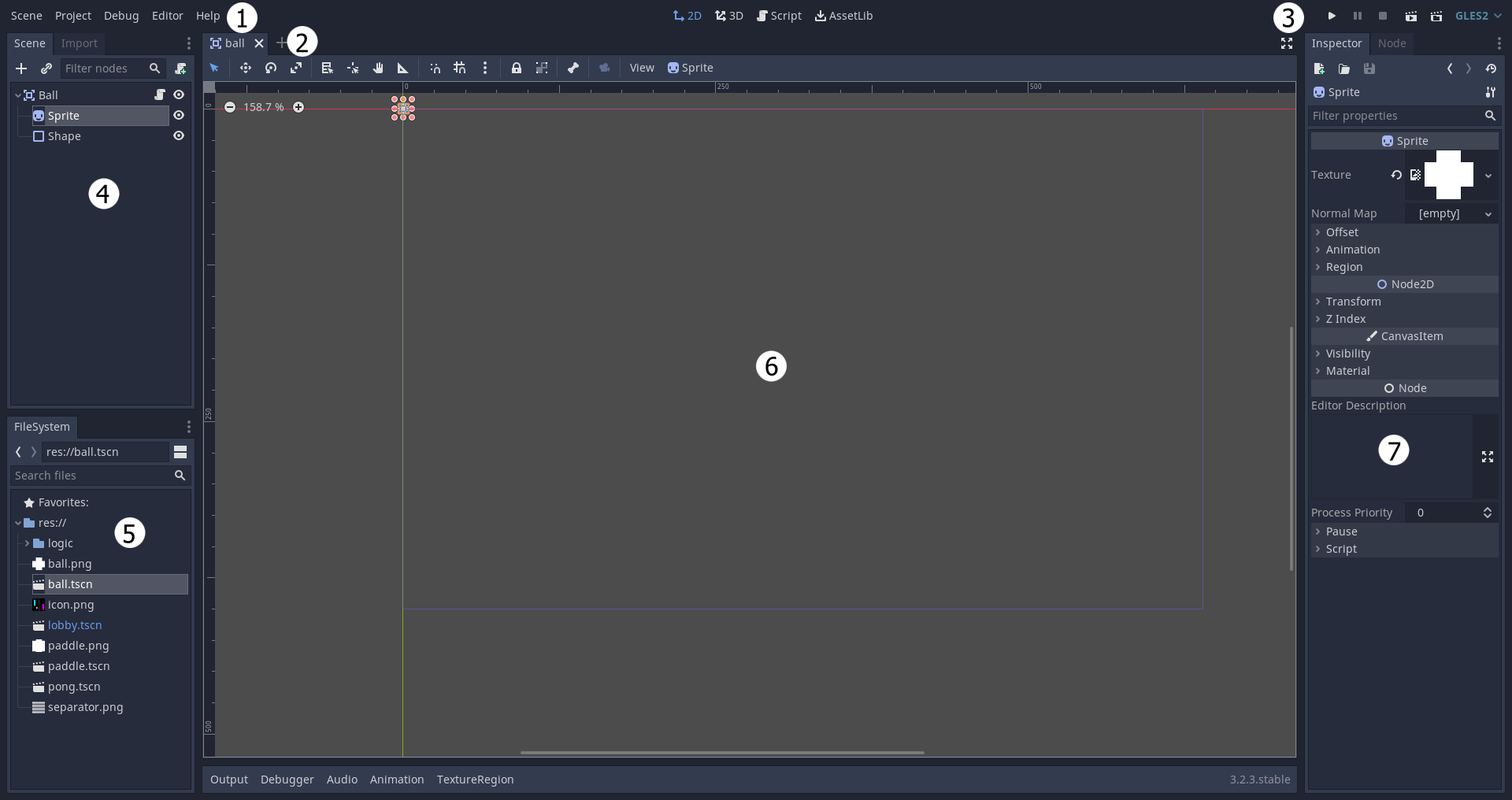 - Here you can test your project within Godot. You can press play to run the entire project or you can play a scene in order to play the selected scene.